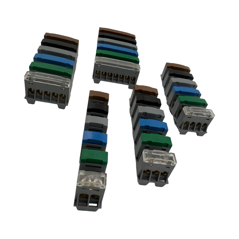 Verkrijgbaar met 2 tot 7 aansluitingen (1,5-16 mm²) in diverse kleuren. -