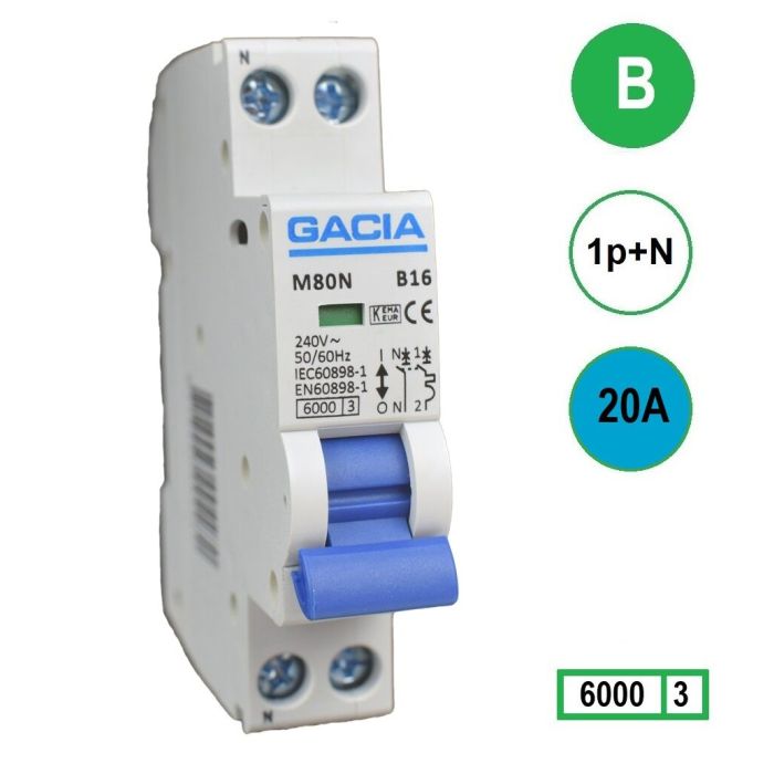GACIA M80N-B20 inst. 1p+n B20 6kA (18mm)