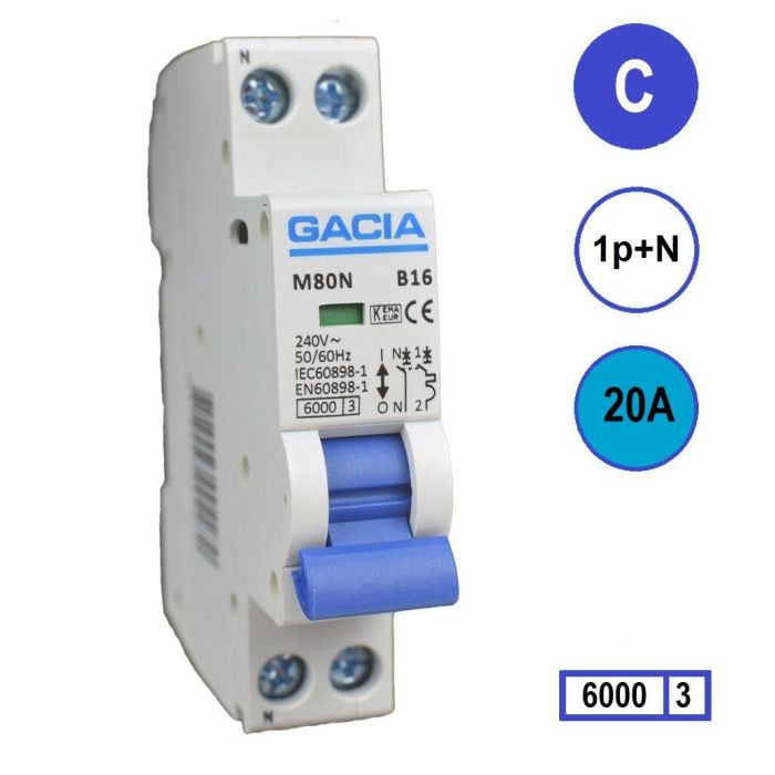 GACIA M80N-C20 inst. 1p+n C20 6kA (18mm)