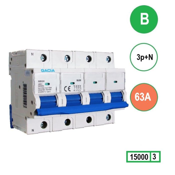GACIA N8GH installatieautomaat 3p+n, karakteristiek B, 63A, 15kA