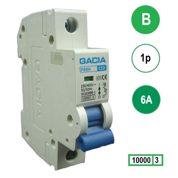 GACIA installatieautomaat 1p, B-karakteristiek, 6A, 10kA