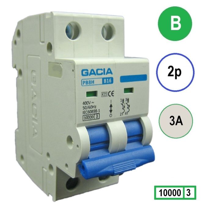 GACIA installatieautomaat 2p, B-karakteristiek, 3A, 10kA