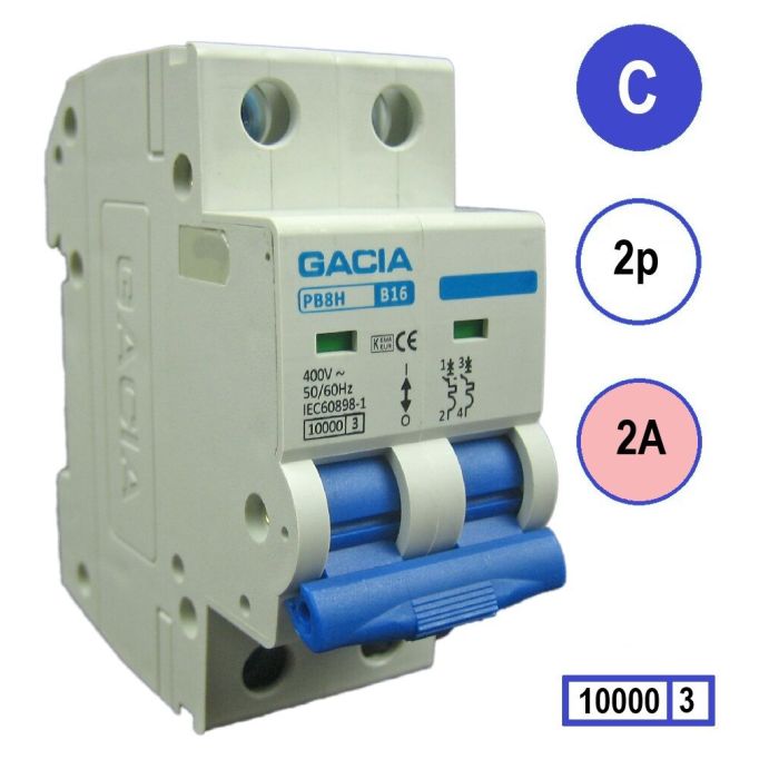 GACIA installatieautomaat 2p, C-karakteristiek, 2A, 10kA