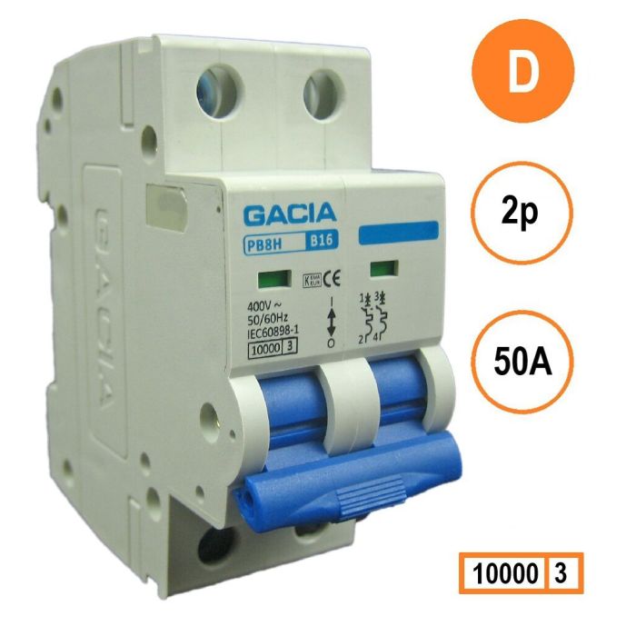 GACIA installatieautomaat 2p, D-karakteristiek, 50A, 10kA