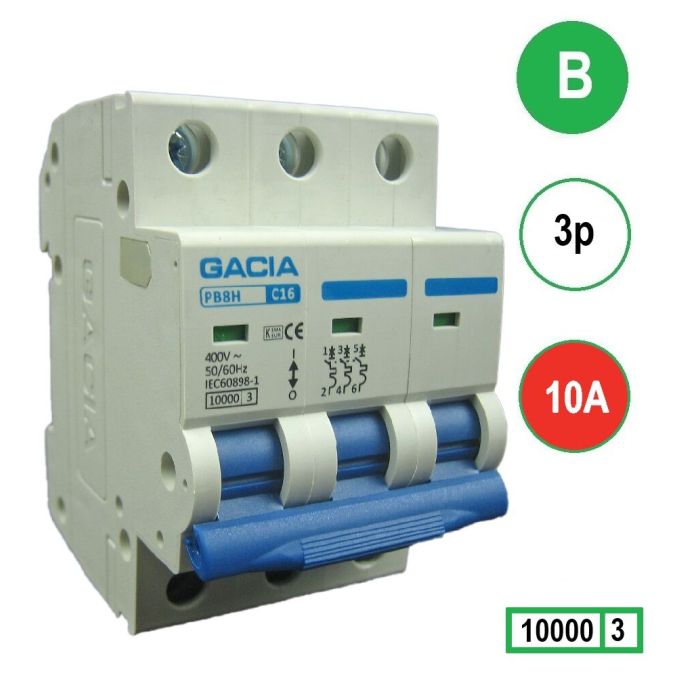 GACIA installatieautomaat 3p, B-karakteristiek, 10A, 10kA