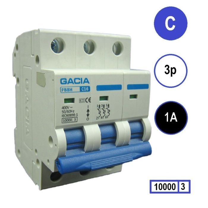GACIA installatieautomaat 3p, C-karakteristiek, 1A, 10kA