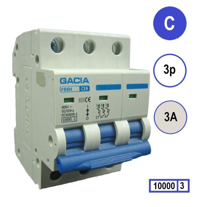GACIA installatieautomaat 3p, C-karakteristiek, 3A, 10kA