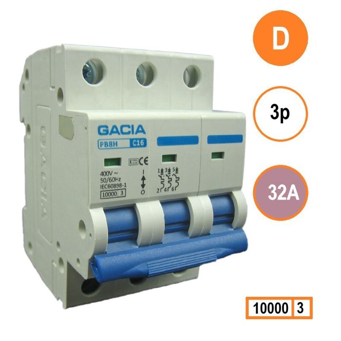 GACIA installatieautomaat 3p, D-karakteristiek, 32A, 10kA