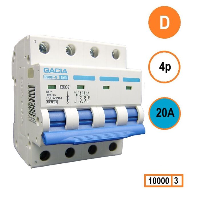 GACIA installatieautomaat 3p+n, D-karakteristiek, 20A, 10kA