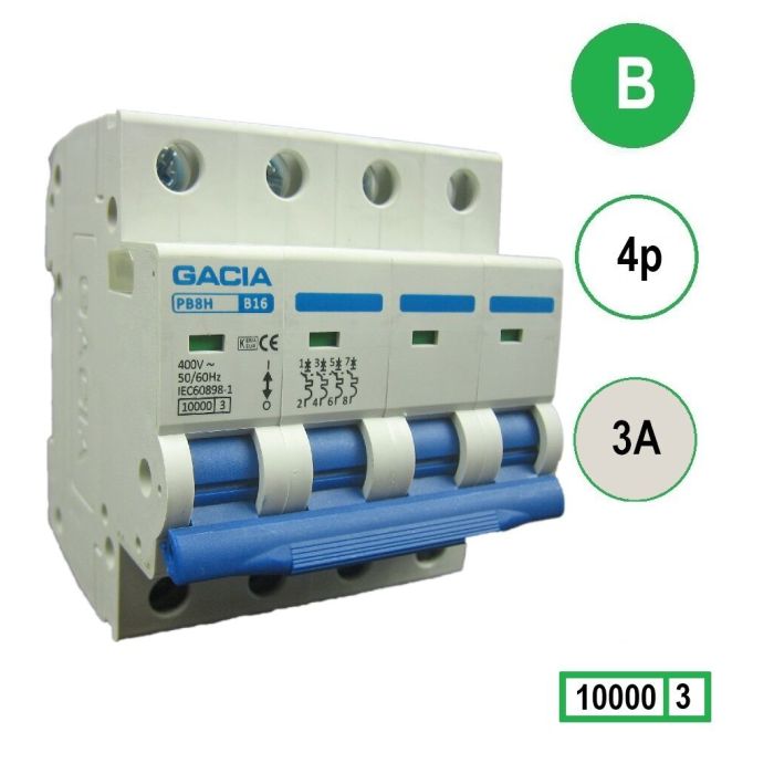 GACIA installatieautomaat 4p, B-karakteristiek, 3A, 10kA
