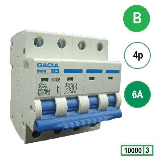 GACIA installatieautomaat 4p, B-karakteristiek, 6A, 10kA