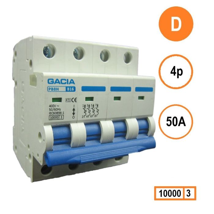 GACIA installatieautomaat 4p, D-karakteristiek, 50A, 10kA