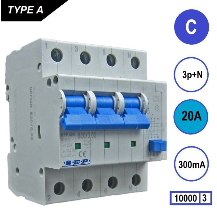 SEP SPFI Aardlekautom. 3p+n C20 300mA 10kA