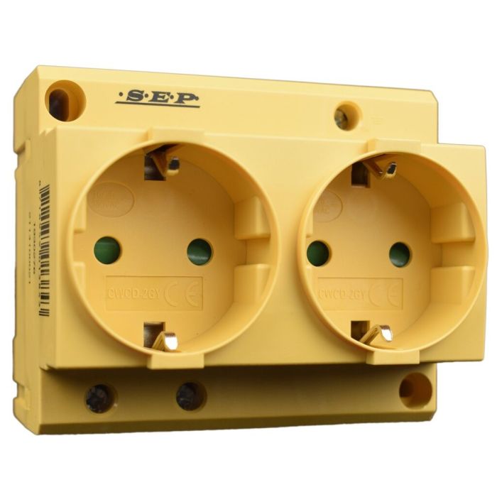 SEP CWCD-2GY dubbel stopcontact 2p+PE DIN-mod (GEEL)