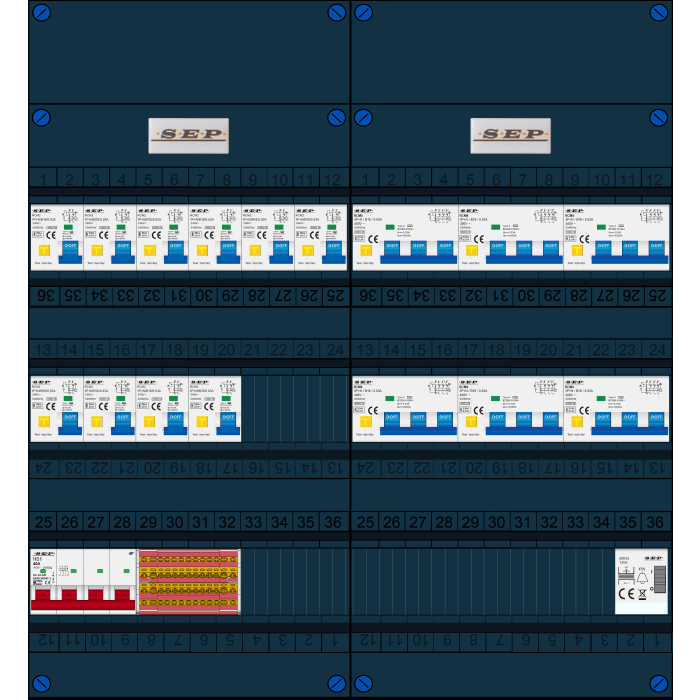 De SEP FS40A serie groepenkast is een typische woningbouw verdeler welke zeer geschikt is voor renovatie en nieuwbouw toepassingen. Doordat de breedte van 220mm gelijk is aan de oude groepenkast is het uitwisselen zeer eenvoudig en hoeft er weinig te worden aangepast. Buiten de standaard leverbare groepenkasten is het mogelijk om een klant-specifieke oplossing aan te vragen. Deze kasten zijn eenvoudig uit te breiden. Alle groepenkasten worden in eigen beheer geassembleerd en getest. Alle componenten worden onder spanning getest, de gebruikte aansluitmaterialen zijn specifiek ontworpen voor deze toepassing. Iedere schroef wordt met de hand aangedraaid op de juiste aandraaimoment.