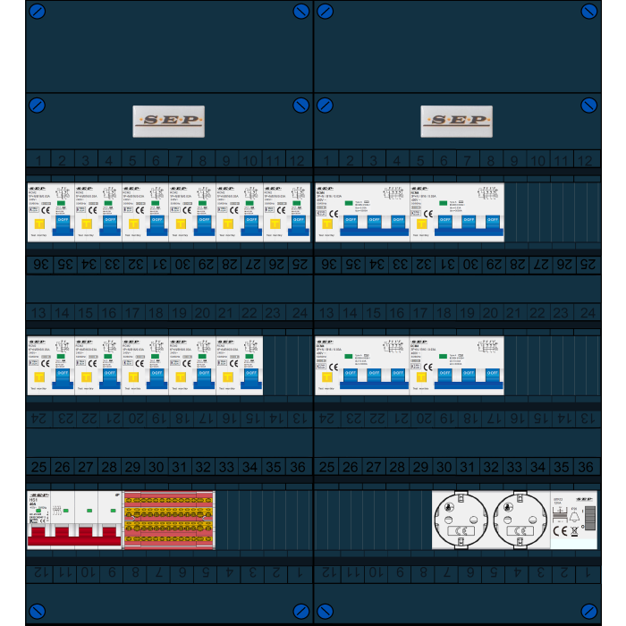 De SEP FS40A serie groepenkast is een typische woningbouw verdeler welke zeer geschikt is voor renovatie en nieuwbouw toepassingen. Doordat de breedte van 220mm gelijk is aan de oude groepenkast is het uitwisselen zeer eenvoudig en hoeft er weinig te worden aangepast. Buiten de standaard leverbare groepenkasten is het mogelijk om een klant-specifieke oplossing aan te vragen. Deze kasten zijn eenvoudig uit te breiden. Alle groepenkasten worden in eigen beheer geassembleerd en getest. Alle componenten worden onder spanning getest, de gebruikte aansluitmaterialen zijn specifiek ontworpen voor deze toepassing. Iedere schroef wordt met de hand aangedraaid op de juiste aandraaimoment.