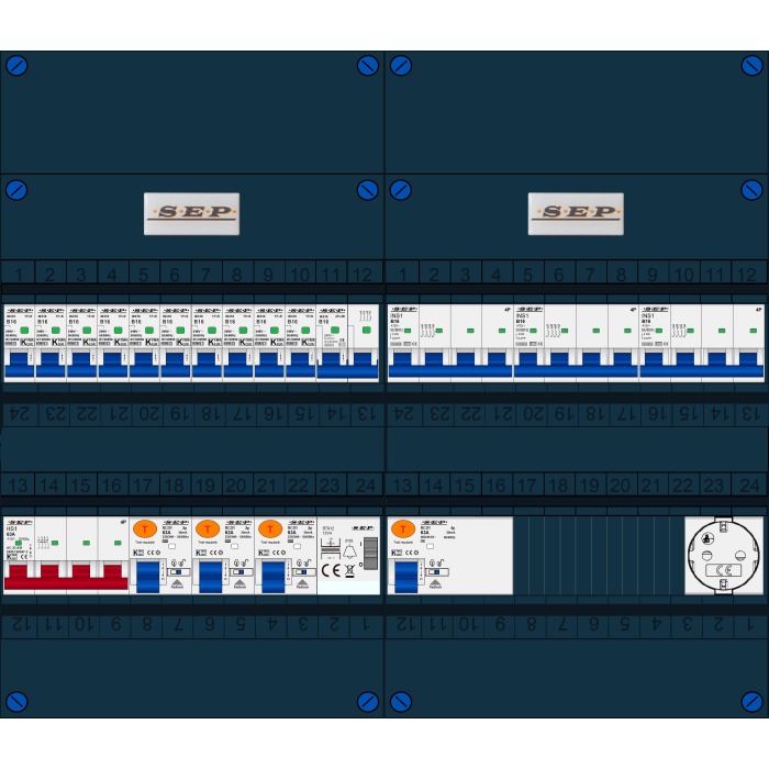 De SEP FS63A serie groepenkast is een woningbouw verdeler welke is voorbereid op PV en EV aansluitingen. De hoofdschakelaar, aardlekschakelaars en interne bedrading zijn uitgevoerd en geschikt voor 63A. Doordat de breedte van 220mm gelijk is aan de oude groepenkast is het uitwisselen zeer eenvoudig en hoeft er weinig te worden aangepast. Buiten de standaard leverbare groepenkasten is het mogelijk om een klant-specifieke oplossing aan te vragen. Deze kasten zijn eenvoudig uit te breiden. Alle groepenkasten worden in eigen beheer geassembleerd en getest. Alle componenten worden onder spanning getest, de gebruikte aansluitmaterialen zijn specifiek ontworpen voor deze toepassing. Iedere schroef wordt met de hand aangedraaid op de juiste aandraaimoment.