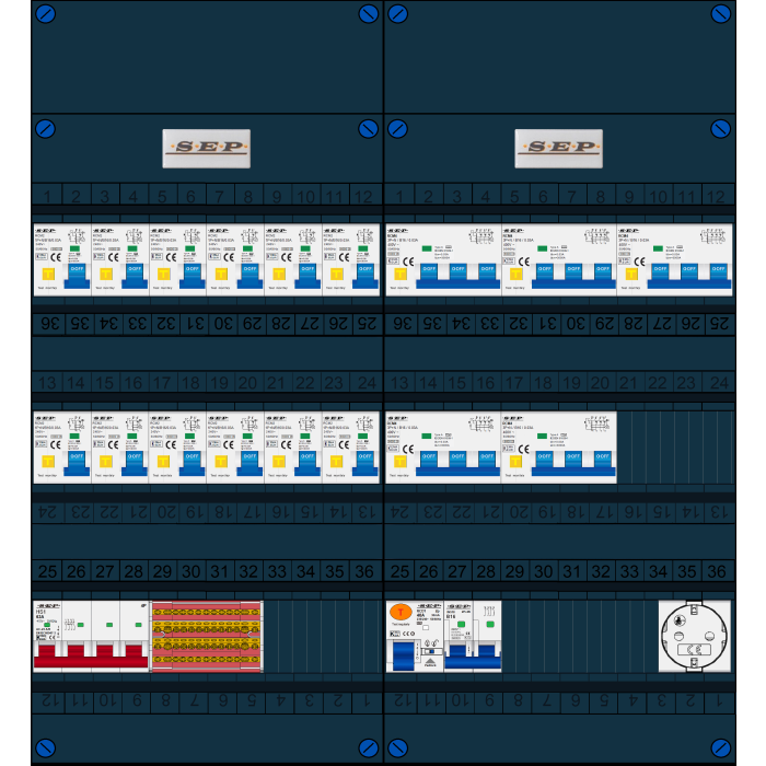 De SEP FS63A serie groepenkast is een woningbouw verdeler welke is voorbereid op PV en EV aansluitingen. De hoofdschakelaar, aardlekschakelaars en interne bedrading zijn uitgevoerd en geschikt voor 63A. Doordat de breedte van 220mm gelijk is aan de oude groepenkast is het uitwisselen zeer eenvoudig en hoeft er weinig te worden aangepast. Buiten de standaard leverbare groepenkasten is het mogelijk om een klant-specifieke oplossing aan te vragen. Deze kasten zijn eenvoudig uit te breiden. Alle groepenkasten worden in eigen beheer geassembleerd en getest. Alle componenten worden onder spanning getest, de gebruikte aansluitmaterialen zijn specifiek ontworpen voor deze toepassing. Iedere schroef wordt met de hand aangedraaid op de juiste aandraaimoment.