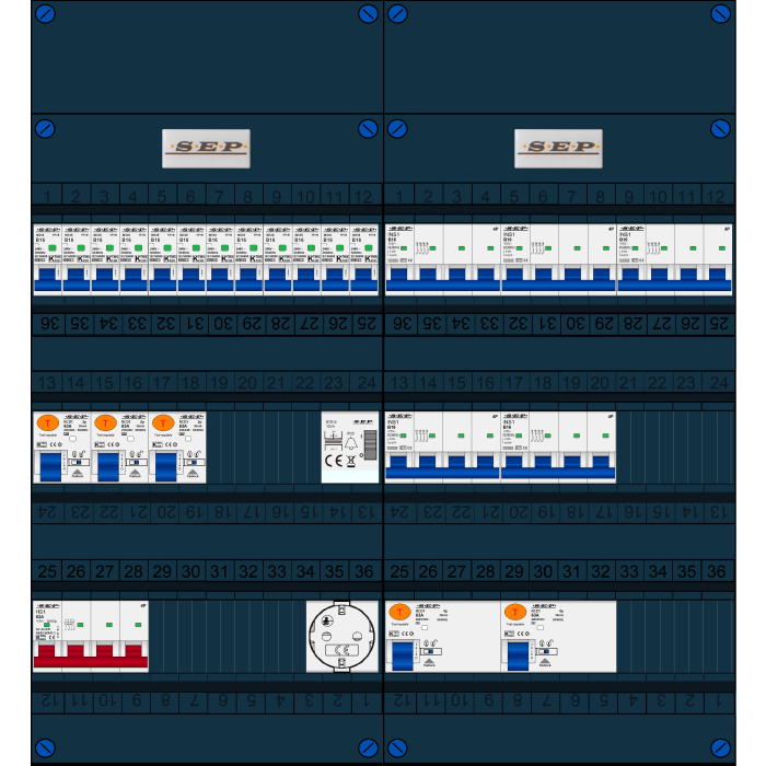 De SEP FS63A serie groepenkast is een woningbouw verdeler welke is voorbereid op PV en EV aansluitingen. De hoofdschakelaar, aardlekschakelaars en interne bedrading zijn uitgevoerd en geschikt voor 63A. Doordat de breedte van 220mm gelijk is aan de oude groepenkast is het uitwisselen zeer eenvoudig en hoeft er weinig te worden aangepast. Buiten de standaard leverbare groepenkasten is het mogelijk om een klant-specifieke oplossing aan te vragen. Deze kasten zijn eenvoudig uit te breiden. Alle groepenkasten worden in eigen beheer geassembleerd en getest. Alle componenten worden onder spanning getest, de gebruikte aansluitmaterialen zijn specifiek ontworpen voor deze toepassing. Iedere schroef wordt met de hand aangedraaid op de juiste aandraaimoment.