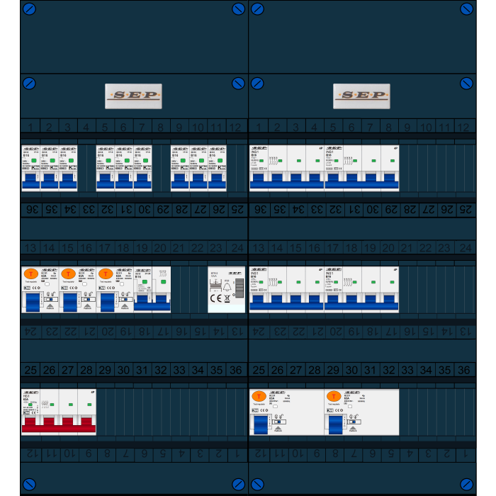 De SEP FS63A serie groepenkast is een woningbouw verdeler welke is voorbereid op PV en EV aansluitingen. De hoofdschakelaar, aardlekschakelaars en interne bedrading zijn uitgevoerd en geschikt voor 63A. Doordat de breedte van 220mm gelijk is aan de oude groepenkast is het uitwisselen zeer eenvoudig en hoeft er weinig te worden aangepast. Buiten de standaard leverbare groepenkasten is het mogelijk om een klant-specifieke oplossing aan te vragen. Deze kasten zijn eenvoudig uit te breiden. Alle groepenkasten worden in eigen beheer geassembleerd en getest. Alle componenten worden onder spanning getest, de gebruikte aansluitmaterialen zijn specifiek ontworpen voor deze toepassing. Iedere schroef wordt met de hand aangedraaid op de juiste aandraaimoment.