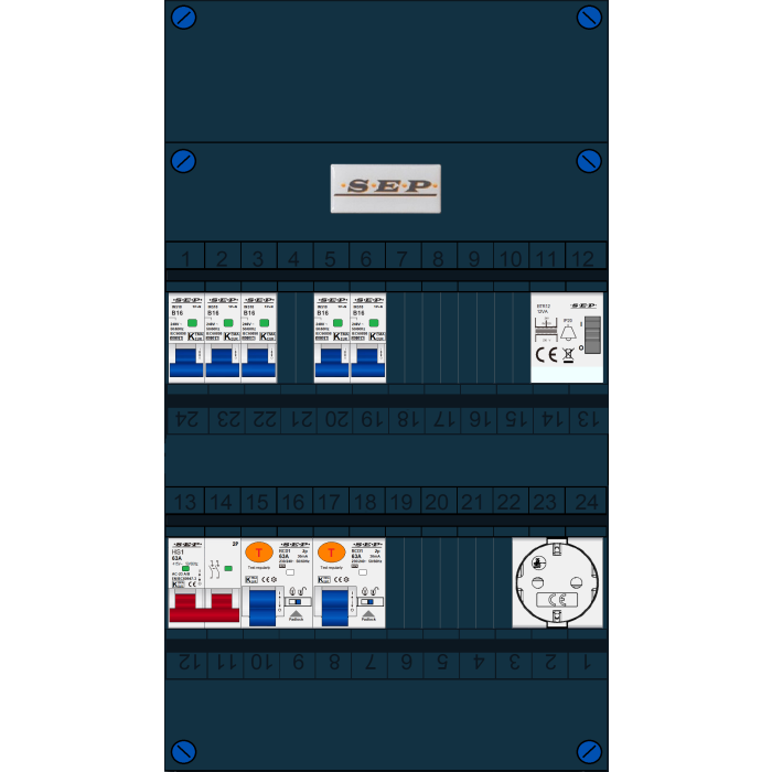 De SEP FS63A serie groepenkast is een woningbouw verdeler welke is voorbereid op PV en EV aansluitingen. De hoofdschakelaar, aardlekschakelaars en interne bedrading zijn uitgevoerd en geschikt voor 63A. Doordat de breedte van 220mm gelijk is aan de oude groepenkast is het uitwisselen zeer eenvoudig en hoeft er weinig te worden aangepast. Buiten de standaard leverbare groepenkasten is het mogelijk om een klant-specifieke oplossing aan te vragen. Deze kasten zijn eenvoudig uit te breiden. Alle groepenkasten worden in eigen beheer geassembleerd en getest. Alle componenten worden onder spanning getest, de gebruikte aansluitmaterialen zijn specifiek ontworpen voor deze toepassing. Iedere schroef wordt met de hand aangedraaid op de juiste aandraaimoment.