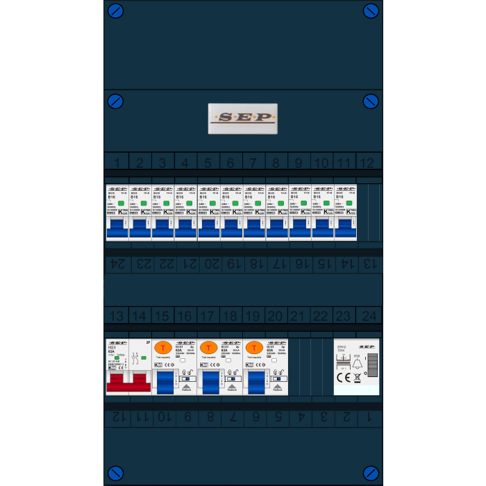 De SEP FS63A serie groepenkast is een woningbouw verdeler welke is voorbereid op PV en EV aansluitingen. De hoofdschakelaar, aardlekschakelaars en interne bedrading zijn uitgevoerd en geschikt voor 63A. Doordat de breedte van 220mm gelijk is aan de oude groepenkast is het uitwisselen zeer eenvoudig en hoeft er weinig te worden aangepast. Buiten de standaard leverbare groepenkasten is het mogelijk om een klant-specifieke oplossing aan te vragen. Deze kasten zijn eenvoudig uit te breiden. Alle groepenkasten worden in eigen beheer geassembleerd en getest. Alle componenten worden onder spanning getest, de gebruikte aansluitmaterialen zijn specifiek ontworpen voor deze toepassing. Iedere schroef wordt met de hand aangedraaid op de juiste aandraaimoment.