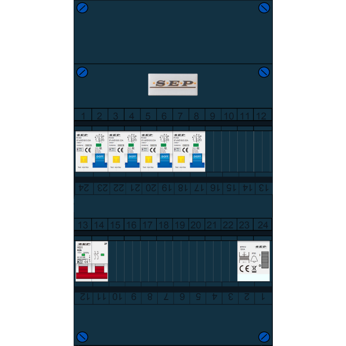 De SEP FS63A serie groepenkast is een woningbouw verdeler welke is voorbereid op PV en EV aansluitingen. De hoofdschakelaar, aardlekschakelaars en interne bedrading zijn uitgevoerd en geschikt voor 63A. Doordat de breedte van 220mm gelijk is aan de oude groepenkast is het uitwisselen zeer eenvoudig en hoeft er weinig te worden aangepast. Buiten de standaard leverbare groepenkasten is het mogelijk om een klant-specifieke oplossing aan te vragen. Deze kasten zijn eenvoudig uit te breiden. Alle groepenkasten worden in eigen beheer geassembleerd en getest. Alle componenten worden onder spanning getest, de gebruikte aansluitmaterialen zijn specifiek ontworpen voor deze toepassing. Iedere schroef wordt met de hand aangedraaid op de juiste aandraaimoment.