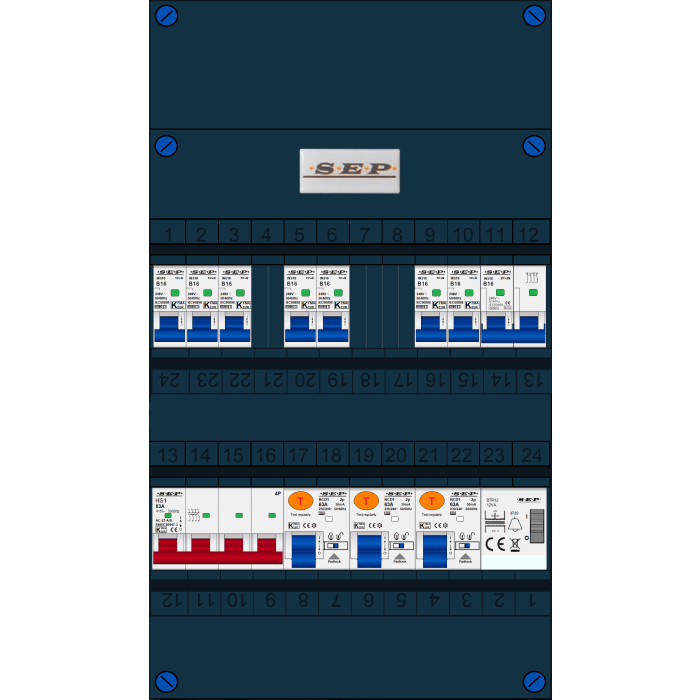 De SEP FS63A serie groepenkast is een woningbouw verdeler welke is voorbereid op PV en EV aansluitingen. De hoofdschakelaar, aardlekschakelaars en interne bedrading zijn uitgevoerd en geschikt voor 63A. Doordat de breedte van 220mm gelijk is aan de oude groepenkast is het uitwisselen zeer eenvoudig en hoeft er weinig te worden aangepast. Buiten de standaard leverbare groepenkasten is het mogelijk om een klant-specifieke oplossing aan te vragen. Deze kasten zijn eenvoudig uit te breiden. Alle groepenkasten worden in eigen beheer geassembleerd en getest. Alle componenten worden onder spanning getest, de gebruikte aansluitmaterialen zijn specifiek ontworpen voor deze toepassing. Iedere schroef wordt met de hand aangedraaid op de juiste aandraaimoment.