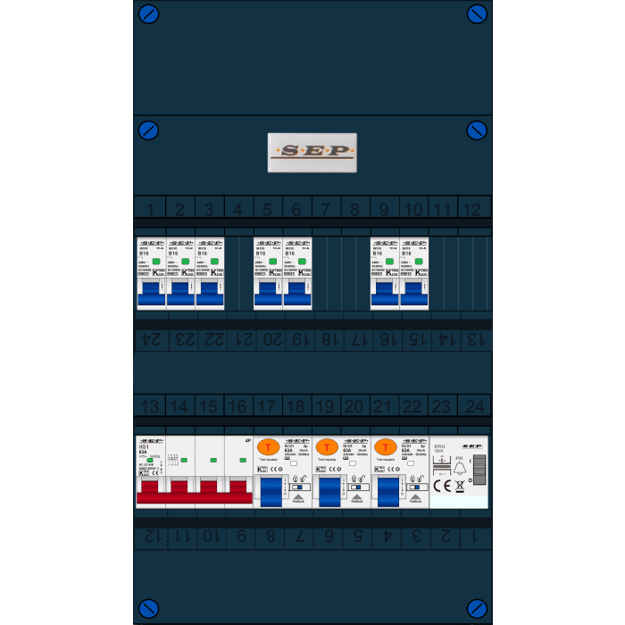 De SEP FS63A serie groepenkast is een woningbouw verdeler welke is voorbereid op PV en EV aansluitingen. De hoofdschakelaar, aardlekschakelaars en interne bedrading zijn uitgevoerd en geschikt voor 63A. Doordat de breedte van 220mm gelijk is aan de oude groepenkast is het uitwisselen zeer eenvoudig en hoeft er weinig te worden aangepast. Buiten de standaard leverbare groepenkasten is het mogelijk om een klant-specifieke oplossing aan te vragen. Deze kasten zijn eenvoudig uit te breiden. Alle groepenkasten worden in eigen beheer geassembleerd en getest. Alle componenten worden onder spanning getest, de gebruikte aansluitmaterialen zijn specifiek ontworpen voor deze toepassing. Iedere schroef wordt met de hand aangedraaid op de juiste aandraaimoment.
