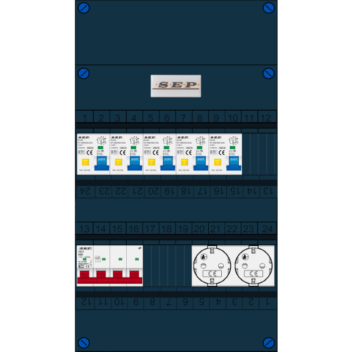 De SEP FS63A serie groepenkast is een woningbouw verdeler welke is voorbereid op PV en EV aansluitingen. De hoofdschakelaar, aardlekschakelaars en interne bedrading zijn uitgevoerd en geschikt voor 63A. Doordat de breedte van 220mm gelijk is aan de oude groepenkast is het uitwisselen zeer eenvoudig en hoeft er weinig te worden aangepast. Buiten de standaard leverbare groepenkasten is het mogelijk om een klant-specifieke oplossing aan te vragen. Deze kasten zijn eenvoudig uit te breiden. Alle groepenkasten worden in eigen beheer geassembleerd en getest. Alle componenten worden onder spanning getest, de gebruikte aansluitmaterialen zijn specifiek ontworpen voor deze toepassing. Iedere schroef wordt met de hand aangedraaid op de juiste aandraaimoment.