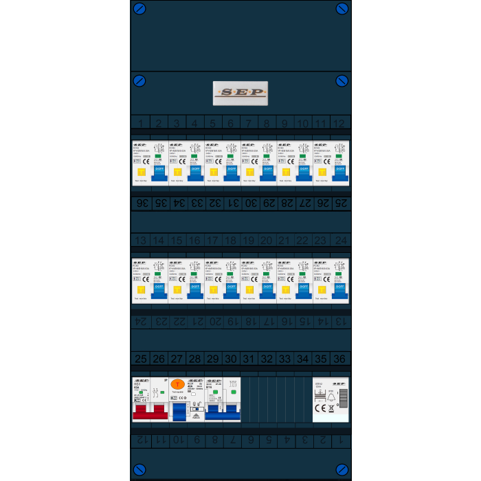 De SEP FS63A serie groepenkast is een woningbouw verdeler welke is voorbereid op PV en EV aansluitingen. De hoofdschakelaar, aardlekschakelaars en interne bedrading zijn uitgevoerd en geschikt voor 63A. Doordat de breedte van 220mm gelijk is aan de oude groepenkast is het uitwisselen zeer eenvoudig en hoeft er weinig te worden aangepast. Buiten de standaard leverbare groepenkasten is het mogelijk om een klant-specifieke oplossing aan te vragen. Deze kasten zijn eenvoudig uit te breiden. Alle groepenkasten worden in eigen beheer geassembleerd en getest. Alle componenten worden onder spanning getest, de gebruikte aansluitmaterialen zijn specifiek ontworpen voor deze toepassing. Iedere schroef wordt met de hand aangedraaid op de juiste aandraaimoment.