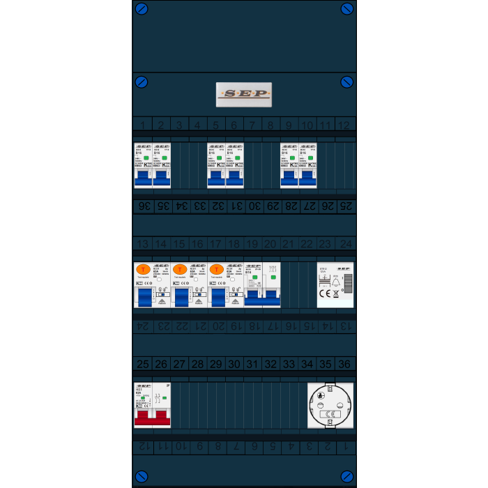 De SEP FS63A serie groepenkast is een woningbouw verdeler welke is voorbereid op PV en EV aansluitingen. De hoofdschakelaar, aardlekschakelaars en interne bedrading zijn uitgevoerd en geschikt voor 63A. Doordat de breedte van 220mm gelijk is aan de oude groepenkast is het uitwisselen zeer eenvoudig en hoeft er weinig te worden aangepast. Buiten de standaard leverbare groepenkasten is het mogelijk om een klant-specifieke oplossing aan te vragen. Deze kasten zijn eenvoudig uit te breiden. Alle groepenkasten worden in eigen beheer geassembleerd en getest. Alle componenten worden onder spanning getest, de gebruikte aansluitmaterialen zijn specifiek ontworpen voor deze toepassing. Iedere schroef wordt met de hand aangedraaid op de juiste aandraaimoment.