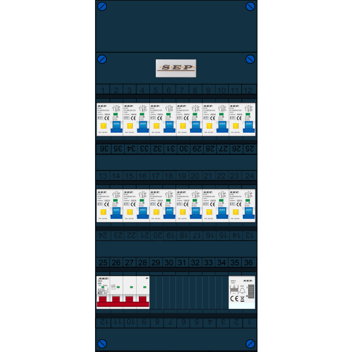 De SEP FS63A serie groepenkast is een woningbouw verdeler welke is voorbereid op PV en EV aansluitingen. De hoofdschakelaar, aardlekschakelaars en interne bedrading zijn uitgevoerd en geschikt voor 63A. Doordat de breedte van 220mm gelijk is aan de oude groepenkast is het uitwisselen zeer eenvoudig en hoeft er weinig te worden aangepast. Buiten de standaard leverbare groepenkasten is het mogelijk om een klant-specifieke oplossing aan te vragen. Deze kasten zijn eenvoudig uit te breiden. Alle groepenkasten worden in eigen beheer geassembleerd en getest. Alle componenten worden onder spanning getest, de gebruikte aansluitmaterialen zijn specifiek ontworpen voor deze toepassing. Iedere schroef wordt met de hand aangedraaid op de juiste aandraaimoment.