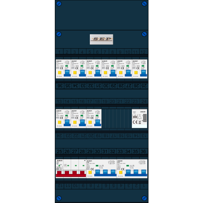 De SEP FS63A serie groepenkast is een woningbouw verdeler welke is voorbereid op PV en EV aansluitingen. De hoofdschakelaar, aardlekschakelaars en interne bedrading zijn uitgevoerd en geschikt voor 63A. Doordat de breedte van 220mm gelijk is aan de oude groepenkast is het uitwisselen zeer eenvoudig en hoeft er weinig te worden aangepast. Buiten de standaard leverbare groepenkasten is het mogelijk om een klant-specifieke oplossing aan te vragen. Deze kasten zijn eenvoudig uit te breiden. Alle groepenkasten worden in eigen beheer geassembleerd en getest. Alle componenten worden onder spanning getest, de gebruikte aansluitmaterialen zijn specifiek ontworpen voor deze toepassing. Iedere schroef wordt met de hand aangedraaid op de juiste aandraaimoment.