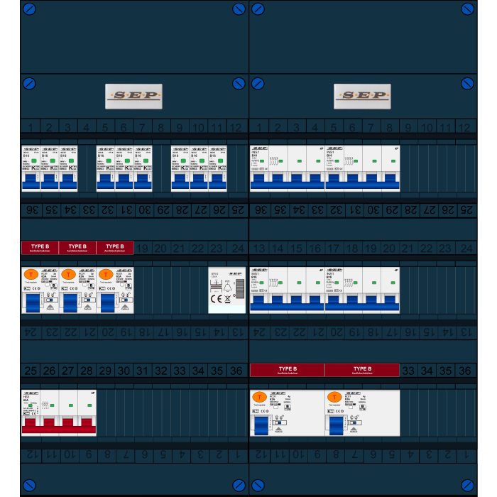 De SEP FS63A serie groepenkast is een woningbouw verdeler welke is voorbereid op PV en EV aansluitingen. De hoofdschakelaar, aardlekschakelaars en interne bedrading zijn uitgevoerd en geschikt voor 63A. Doordat de breedte van 220mm gelijk is aan de oude groepenkast is het uitwisselen zeer eenvoudig en hoeft er weinig te worden aangepast. Buiten de standaard leverbare groepenkasten is het mogelijk om een klant-specifieke oplossing aan te vragen. Deze kasten zijn eenvoudig uit te breiden. Alle groepenkasten worden in eigen beheer geassembleerd en getest. Alle componenten worden onder spanning getest, de gebruikte aansluitmaterialen zijn specifiek ontworpen voor deze toepassing. Iedere schroef wordt met de hand aangedraaid op de juiste aandraaimoment.