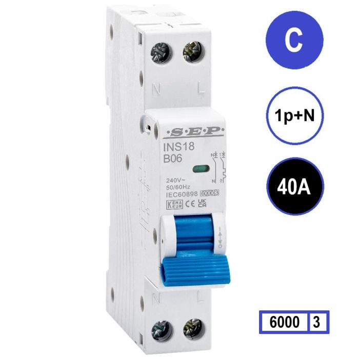SEP INS18 installatieautomaat 1p+n C40 6kA 1mod (18mm)