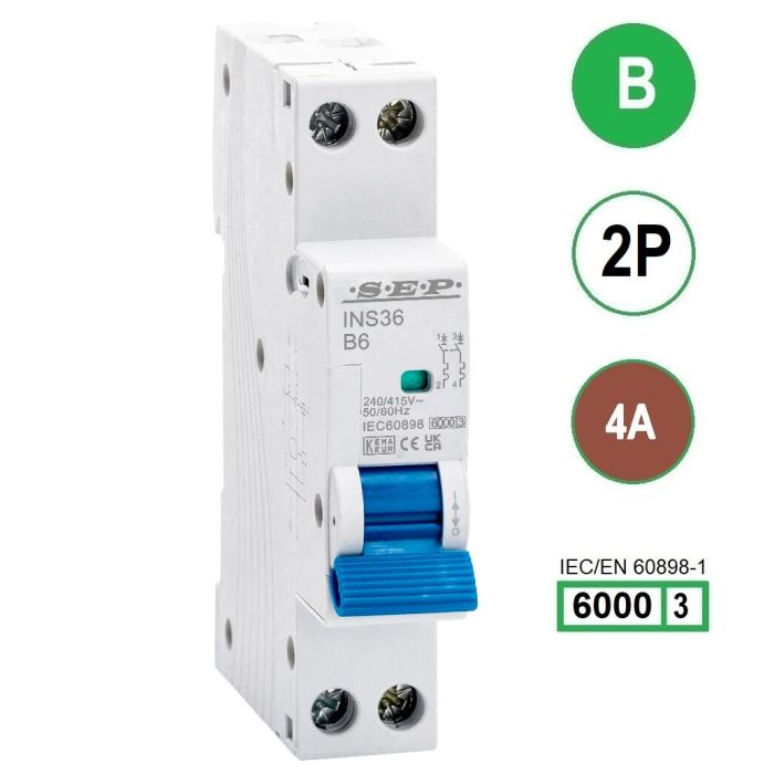 SEP INS36 installatieautomaat 2 polig, 'B'- karakteristiek, 4A, 6kA
