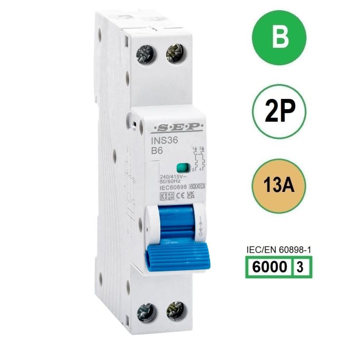 SEP INS36 installatieautomaat 2 polig, 'B'- karakteristiek, 13A, 6kA