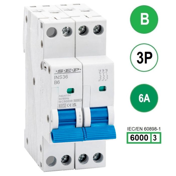 SEP INS36 installatieautomaat 3P, 'B'- karakteristiek, 6A, 6kA