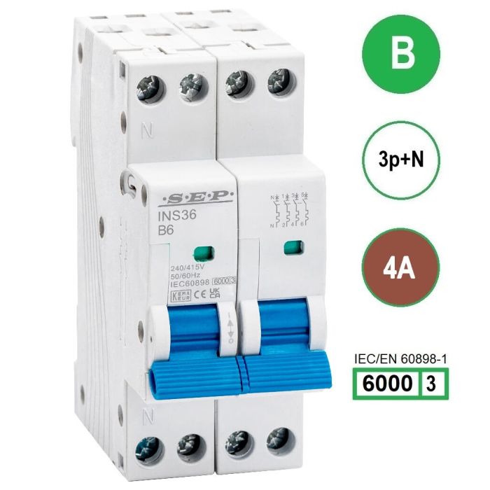 SEP INS36-3NB04 inst. 3p+n B4 6kA (36mm)