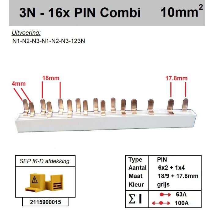 Verdeelkam t.b.v. 6xRCE1/RCD18 en 1x SPFI (aansluiting onderzijde)