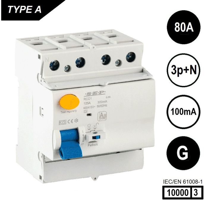 SEP RCD1 Type A[G] al.schak 4p 80A 100mA 10kA
