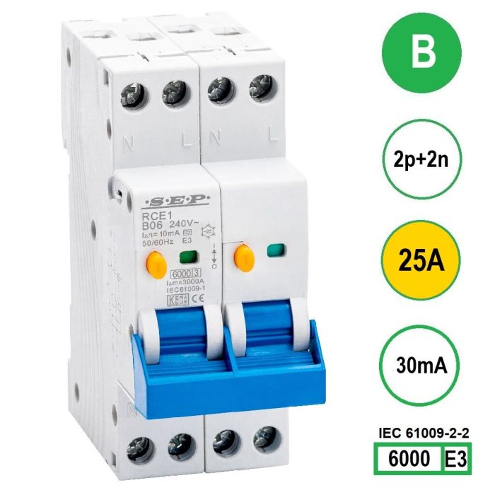 SEP RCE1 Aardlekautom.2p+2n B25 30mA 6kA (18mm)