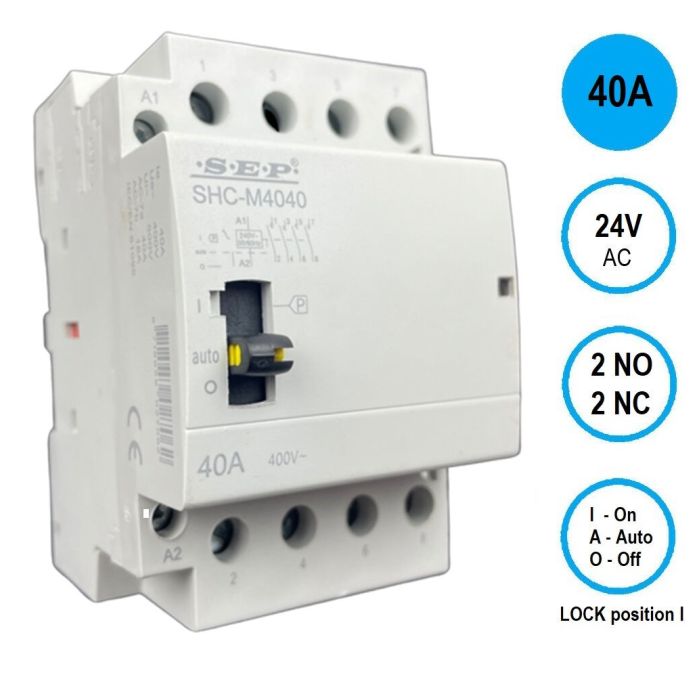 SEP SHC Handbediend Inst.relais 24VAC, 40A, 2NO/2NC