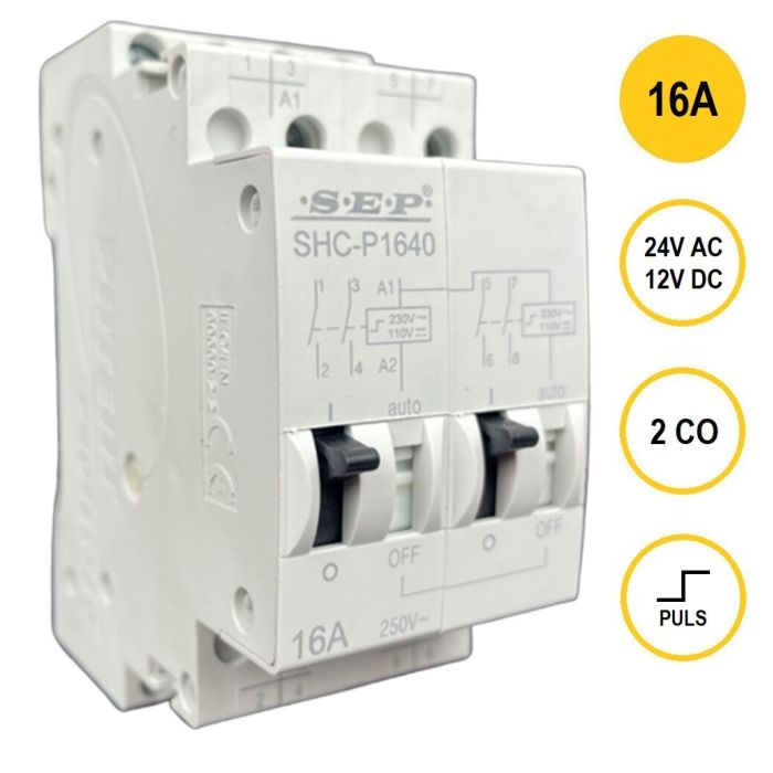 SEP SHC Impulsrelais 24VAC/12VDC, 16A, 2CO (change over)