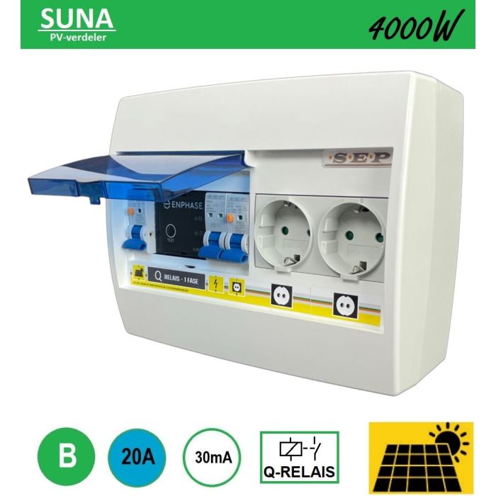 SEP SUNA PV-verdeler, Enphase Q-relais, omvormerbeveiliging aardlekautom. 1p+n B20 30mA – tweevoudige contactdoos