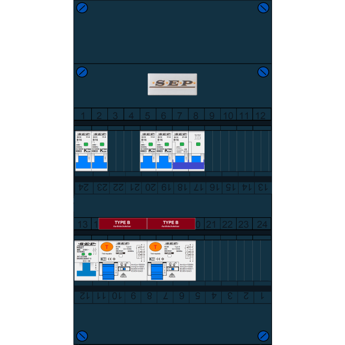 Met de SEP NOVA-B groepenkast is de installatie voorbereid op de toekomst. De aardlekschakelaars zijn uitgevoerd in de TYPE B variant waarmee niet alleen alle functies van een Type A maar ook vlakke DC-lekstromen, grotere pulserende gelijkstromen en gemengde frequenties tot 2000Hz worden gewaarborgd. Hiermee is de groepenkast compleet voorbereid op de nieuwe apparatuur waar power electronics worden toegepast. Doordat de breedte van 220mm gelijk is aan de oude groepenkast is het uitwisselen zeer eenvoudig en hoeft er weinig te worden aangepast. Buiten de standaard leverbare groepenkasten is het mogelijk om een klant-specifieke oplossing aan te vragen. Deze kasten zijn eenvoudig uit te breiden. Alle groepenkasten worden in eigen beheer geassembleerd en getest. Alle componenten worden onder spanning getest, de gebruikte aansluitmaterialen zijn specifiek ontworpen voor deze toepassing. Iedere schroef wordt met de hand aangedraaid op de juiste aandraaimoment.