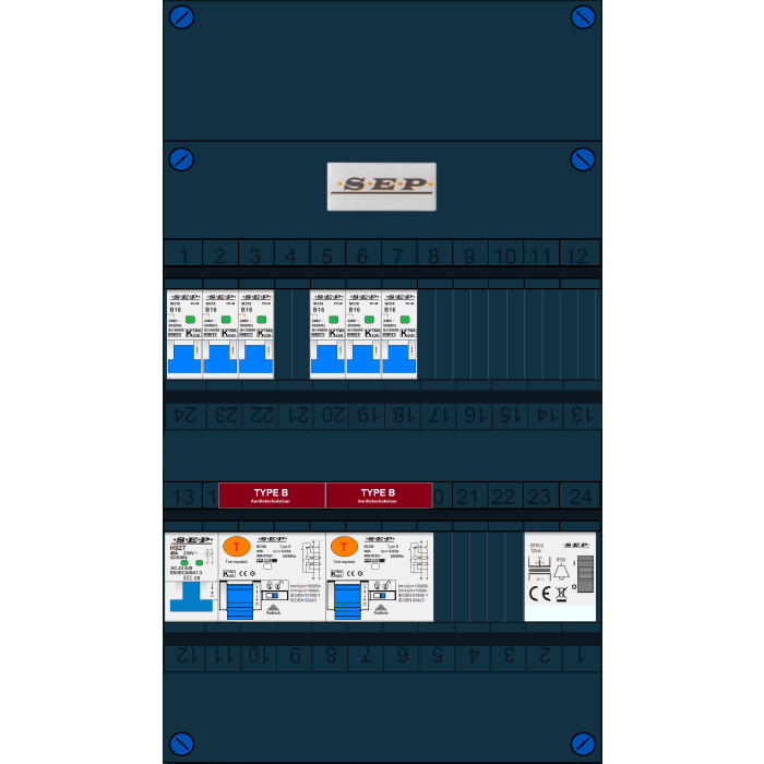 Met de SEP NOVA-B groepenkast is de installatie voorbereid op de toekomst. De aardlekschakelaars zijn uitgevoerd in de TYPE B variant waarmee niet alleen alle functies van een Type A maar ook vlakke DC-lekstromen, grotere pulserende gelijkstromen en gemengde frequenties tot 2000Hz worden gewaarborgd. Hiermee is de groepenkast compleet voorbereid op de nieuwe apparatuur waar power electronics worden toegepast. Doordat de breedte van 220mm gelijk is aan de oude groepenkast is het uitwisselen zeer eenvoudig en hoeft er weinig te worden aangepast. Buiten de standaard leverbare groepenkasten is het mogelijk om een klant-specifieke oplossing aan te vragen. Deze kasten zijn eenvoudig uit te breiden. Alle groepenkasten worden in eigen beheer geassembleerd en getest. Alle componenten worden onder spanning getest, de gebruikte aansluitmaterialen zijn specifiek ontworpen voor deze toepassing. Iedere schroef wordt met de hand aangedraaid op de juiste aandraaimoment.