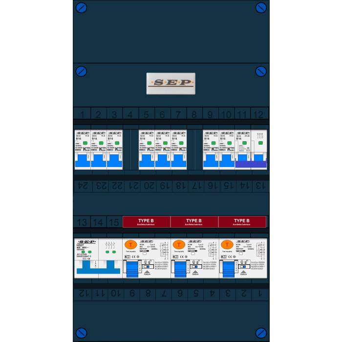 Met de SEP NOVA-B groepenkast is de installatie voorbereid op de toekomst. De aardlekschakelaars zijn uitgevoerd in de TYPE B variant waarmee niet alleen alle functies van een Type A maar ook vlakke DC-lekstromen, grotere pulserende gelijkstromen en gemengde frequenties tot 2000Hz worden gewaarborgd. Hiermee is de groepenkast compleet voorbereid op de nieuwe apparatuur waar power electronics worden toegepast. Doordat de breedte van 220mm gelijk is aan de oude groepenkast is het uitwisselen zeer eenvoudig en hoeft er weinig te worden aangepast. Buiten de standaard leverbare groepenkasten is het mogelijk om een klant-specifieke oplossing aan te vragen. Deze kasten zijn eenvoudig uit te breiden. Alle groepenkasten worden in eigen beheer geassembleerd en getest. Alle componenten worden onder spanning getest, de gebruikte aansluitmaterialen zijn specifiek ontworpen voor deze toepassing. Iedere schroef wordt met de hand aangedraaid op de juiste aandraaimoment.