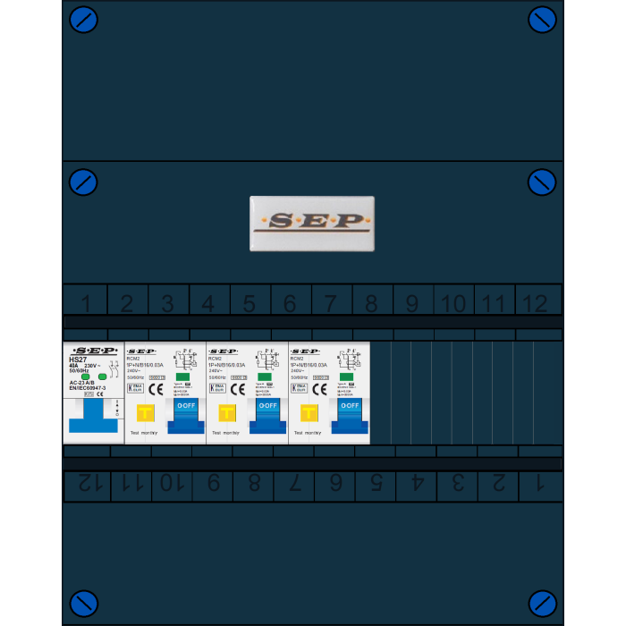 SEP Groepenkast, hoofdschakelaar, 3x Aardlekautomaat B16/30mA (1 fase)